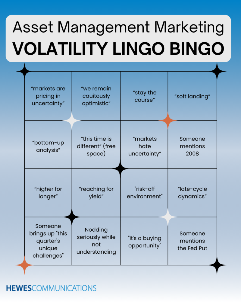 Volatility creates whitespace. It’s when investors start comparing, rethinking, reallocating. Make sure your messaging reinforces what makes you different—your edge, your values, your investment DNA.